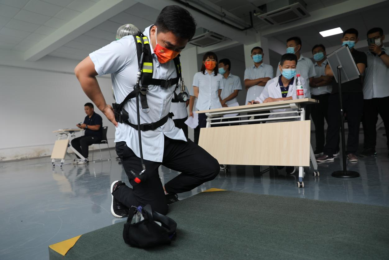 據(jù)了解,本次選拔共設(shè)安全標(biāo)志識別、消防水帶的連接、單人徒手心肺復(fù)蘇操作、正壓式空氣呼吸器穿戴、高處作業(yè)防護(hù)用品穿戴五項(xiàng)環(huán)節(jié),各參賽選手需在規(guī)定時(shí)限10分鐘內(nèi),熟練完成各項(xiàng)實(shí)操科目,既考驗(yàn)個(gè)人能力也反映團(tuán)隊(duì)協(xié)作的重要性,激烈程度不言而喻。